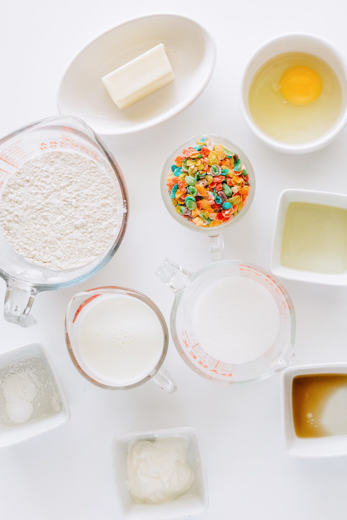 To make these delicious Fruity Pebbles Donuts, you will need the following ingredients: