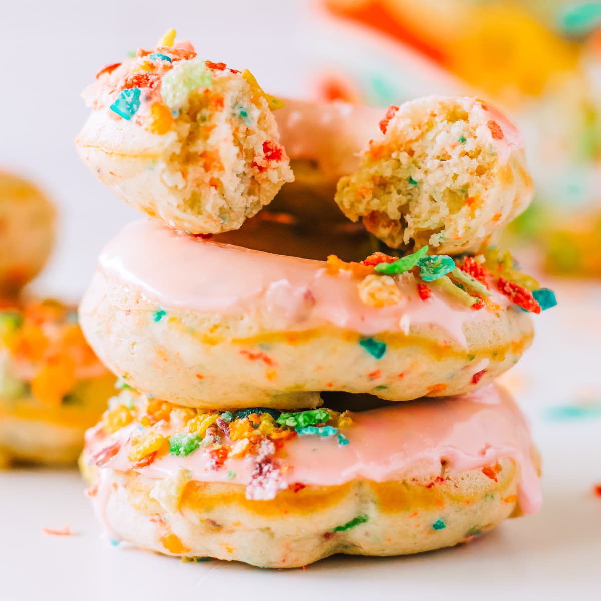Your guests will be impressed by the vibrant colors and the burst of fruity flavors. Whether you choose the glazed, filled, or bite-sized version, these Fruity Pebbles Donuts are sure to be a hit.