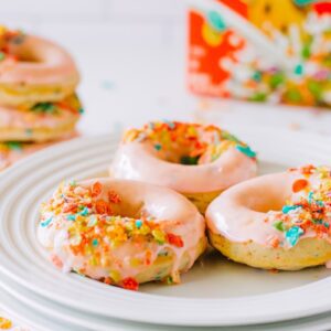 Finally, serve and enjoy your homemade Fruity Pebbles Donuts!