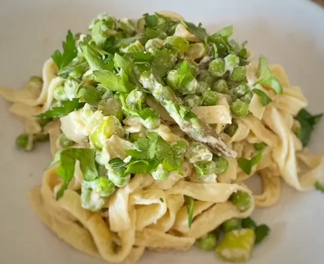 Asparagus and pea sauce combines tender asparagus and sweet peas to create a creamy and vibrant flavor profile for pasta dishes. This green sauce option highlights the essence of springtime flavors, offering a refreshing and nutrient-rich addition. The delicate appeal lies in the harmonious marriage of earthy asparagus and sweet peas, resulting in a sauce that complements various pasta shapes.