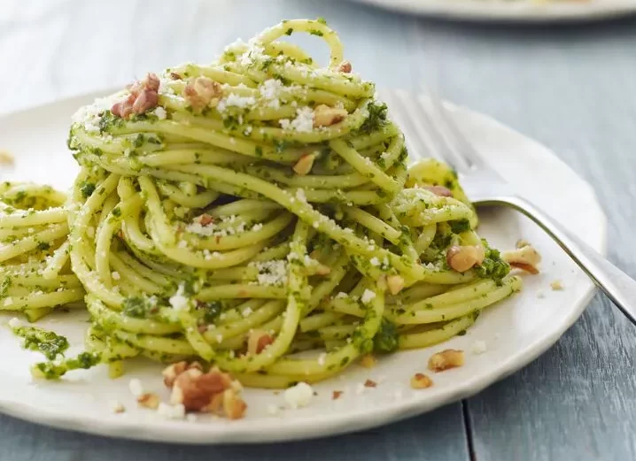 Kale and walnut sauce combines the earthy essence of kale with the nutty richness of walnuts, creating a creamy green sauce that enhances pasta dishes with wholesome and flavorful elements. This unique sauce captures the robust notes of kale and the nutty crunch of walnuts, offering a distinctive dining experience.