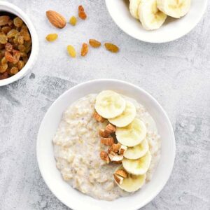 2. Banana Cream Overnight Oats: These overnight oats are an excellent high-protein breakfast option when trying to gain weight. They’re delicious and packed with fiber.Get the Recipe