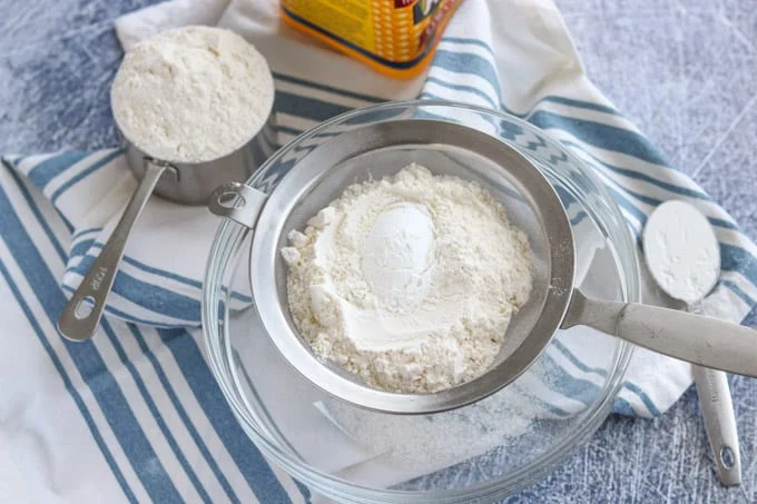 - Add 2 tablespoons of cornstarch to the all-purpose flour.
