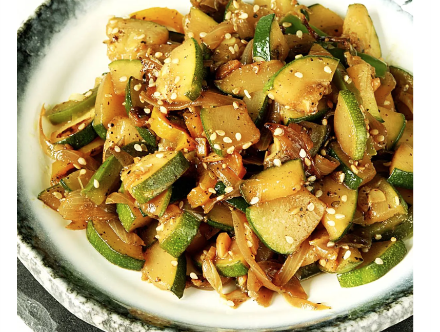 A South Indian-inspired stir-fry that tempers the zucchini with mustard seeds, curry leaves, and fresh grated coconut. It creates a dry, textured side dish that highlights the natural sweetness of the vegetable.