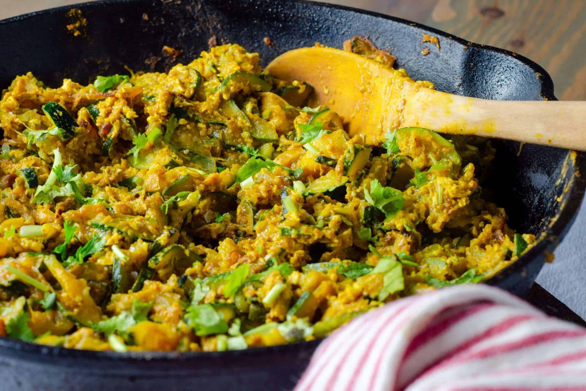 A quick 15-minute stir-fry of zucchini and spices that serves as a perfect stuffing for wraps or sandwiches. It’s a minimally spiced, kid-friendly way to sneak more greens into a lunchbox.