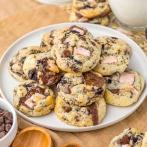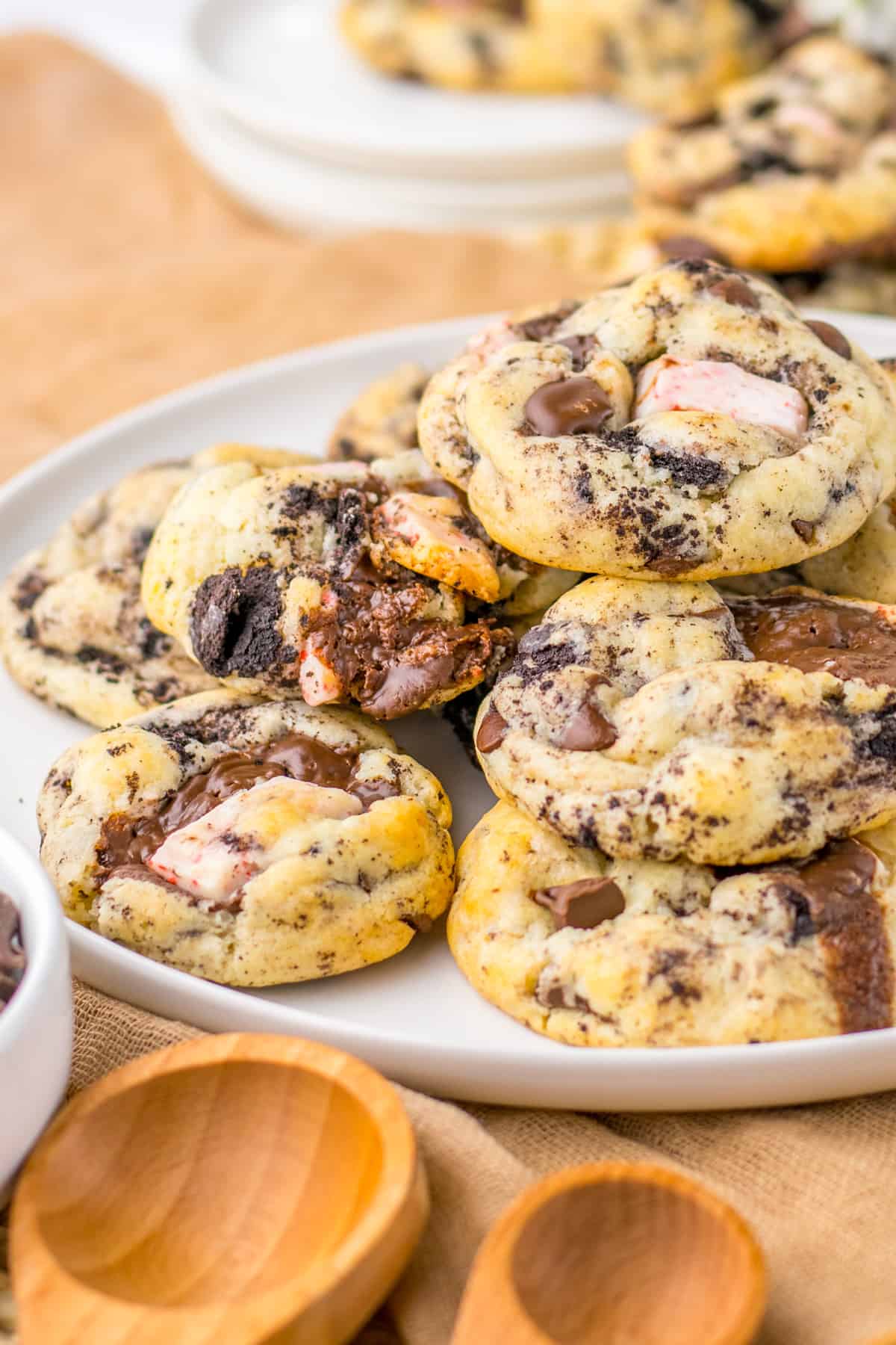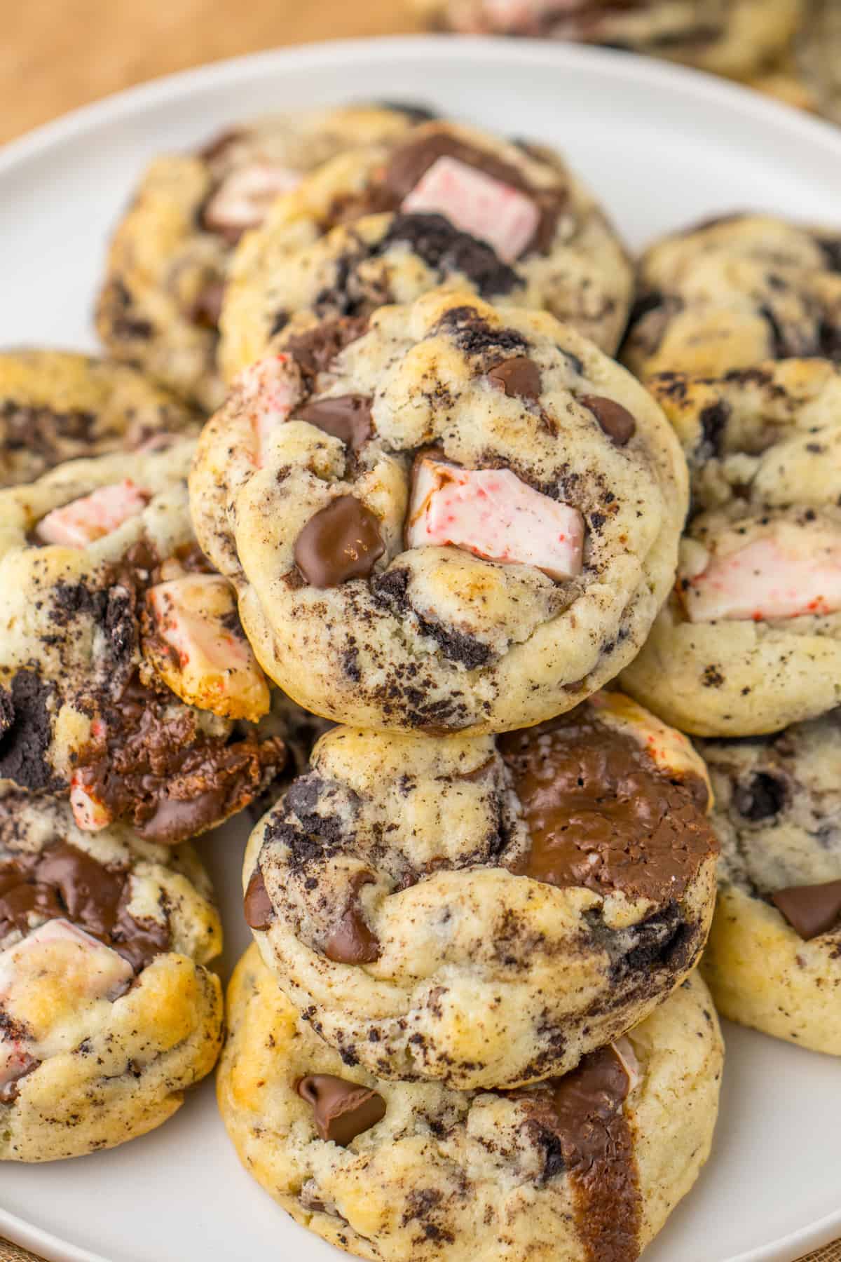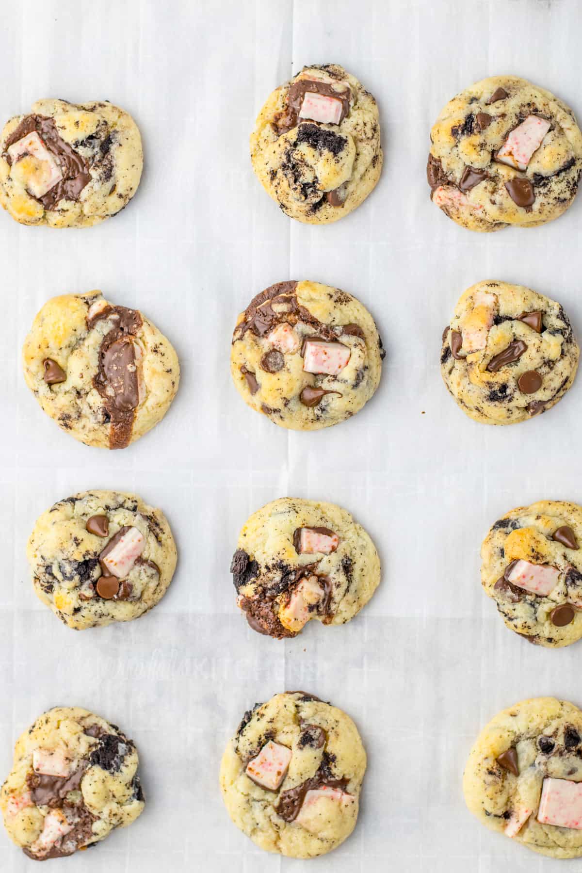 What sets these cookies apart from typical peppermint treats is the use of chocolate mints, which adds a burst of minty flavor in a subtle, creamy way. The crunch of Oreo chunks, coupled with the smoothness of chocolate chips, creates a delightful play of textures, making these cookies perfect for the holiday season.