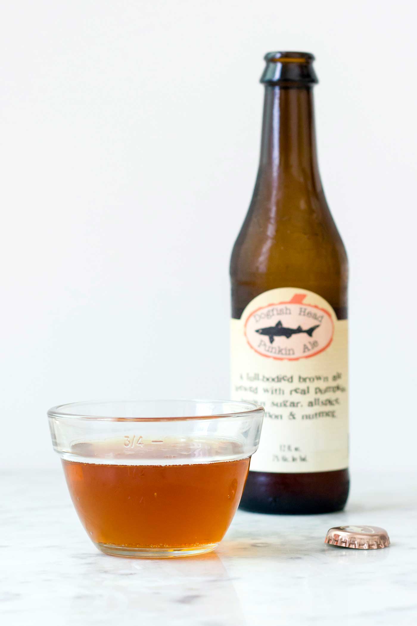 - Pour the beer into a saucepan over medium-high heat. Bring to a boil, reduce to a simmer and let cook for 5 minutes. Remove from heat and let cool to room temperature. Preheat oven to 350 degrees F.