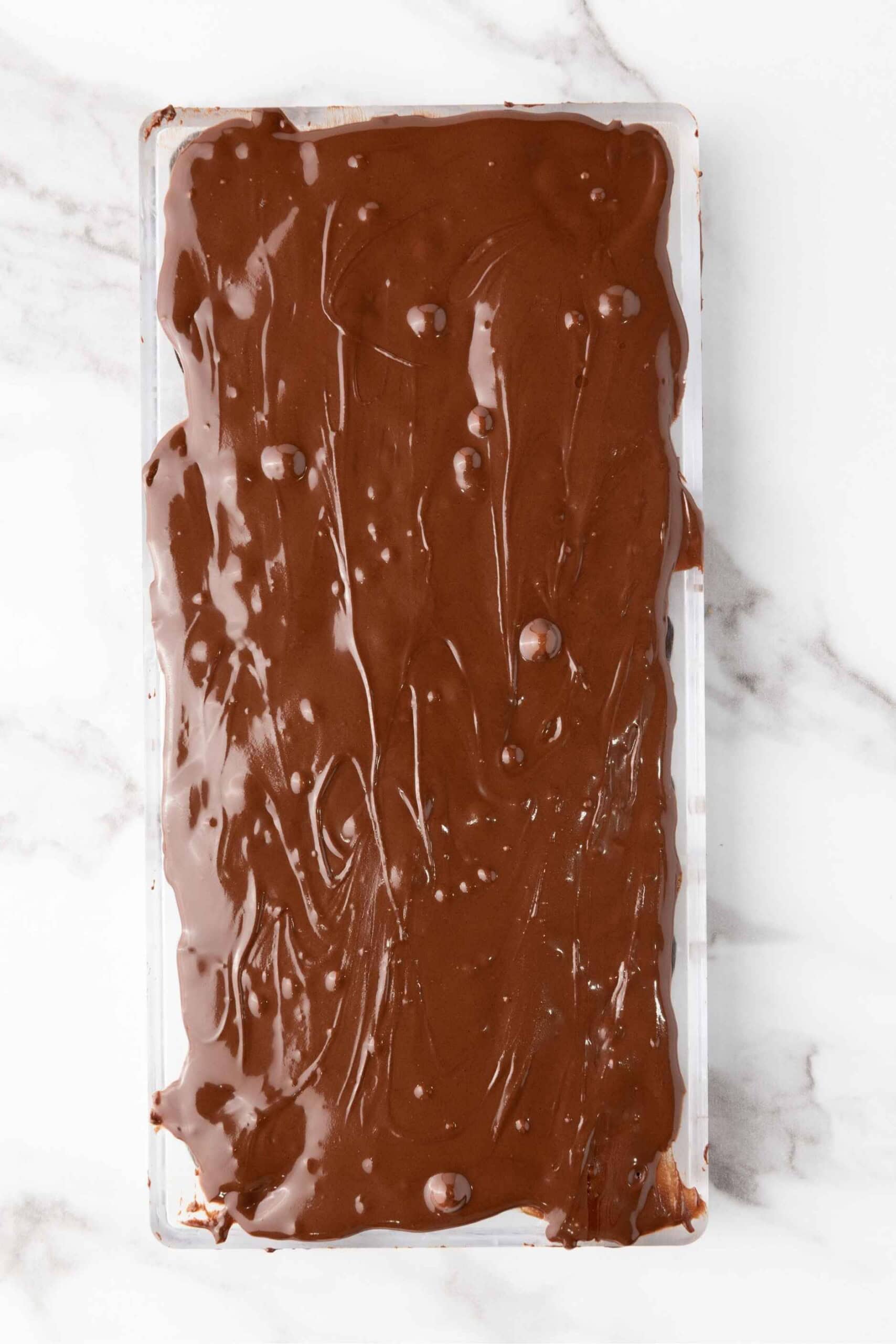 - Set the Chocolate: Put the chocolate-coated mold in the fridge for about 10 minutes or until it sets a bit.