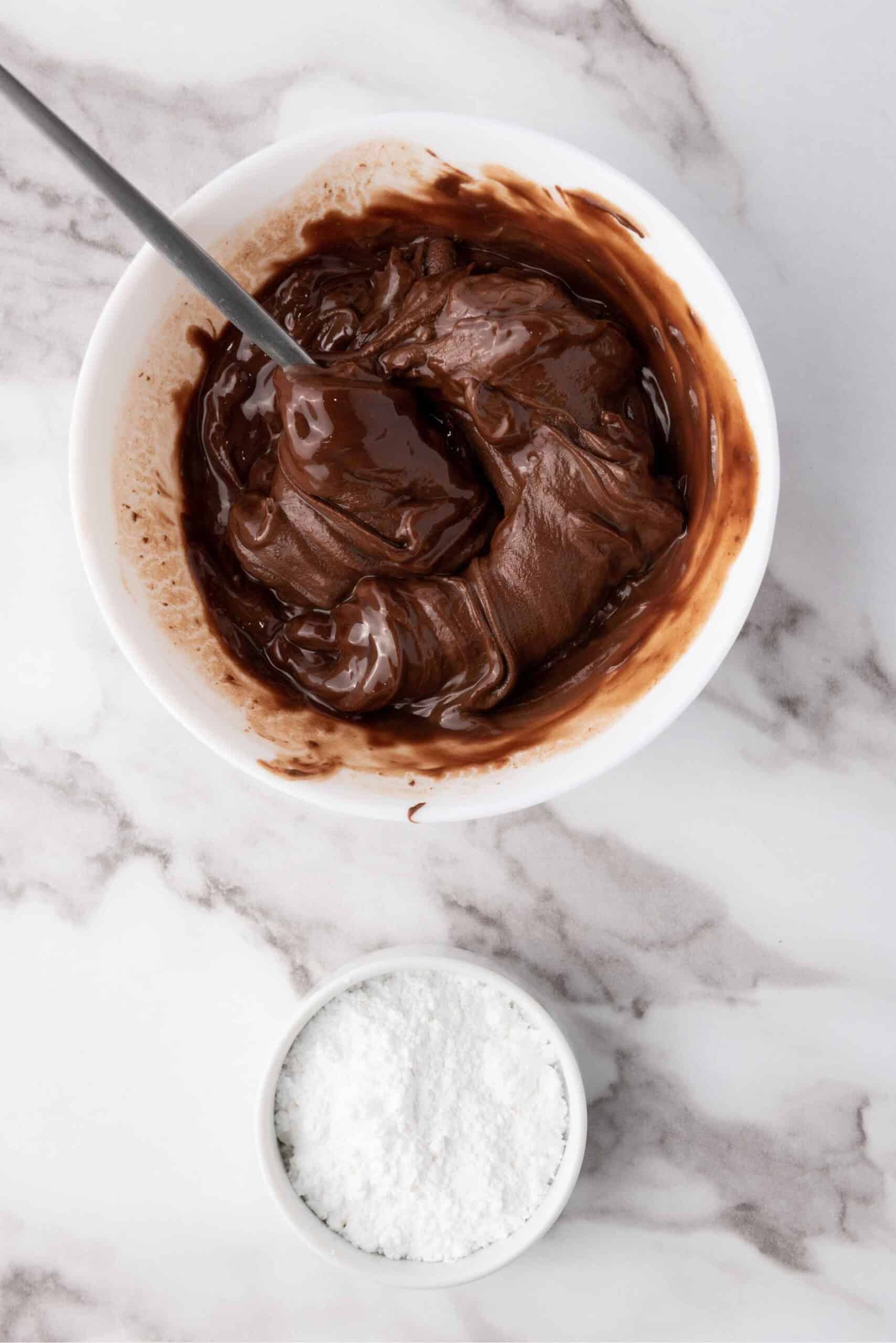 In a microwave-safe bowl, combine the Nutella and butter. Heat for about 30 seconds—just enough to melt the butter. Whisk them together until smooth, then stir in the powdered sugar until it is completely blended. Set this luscious mixture aside.