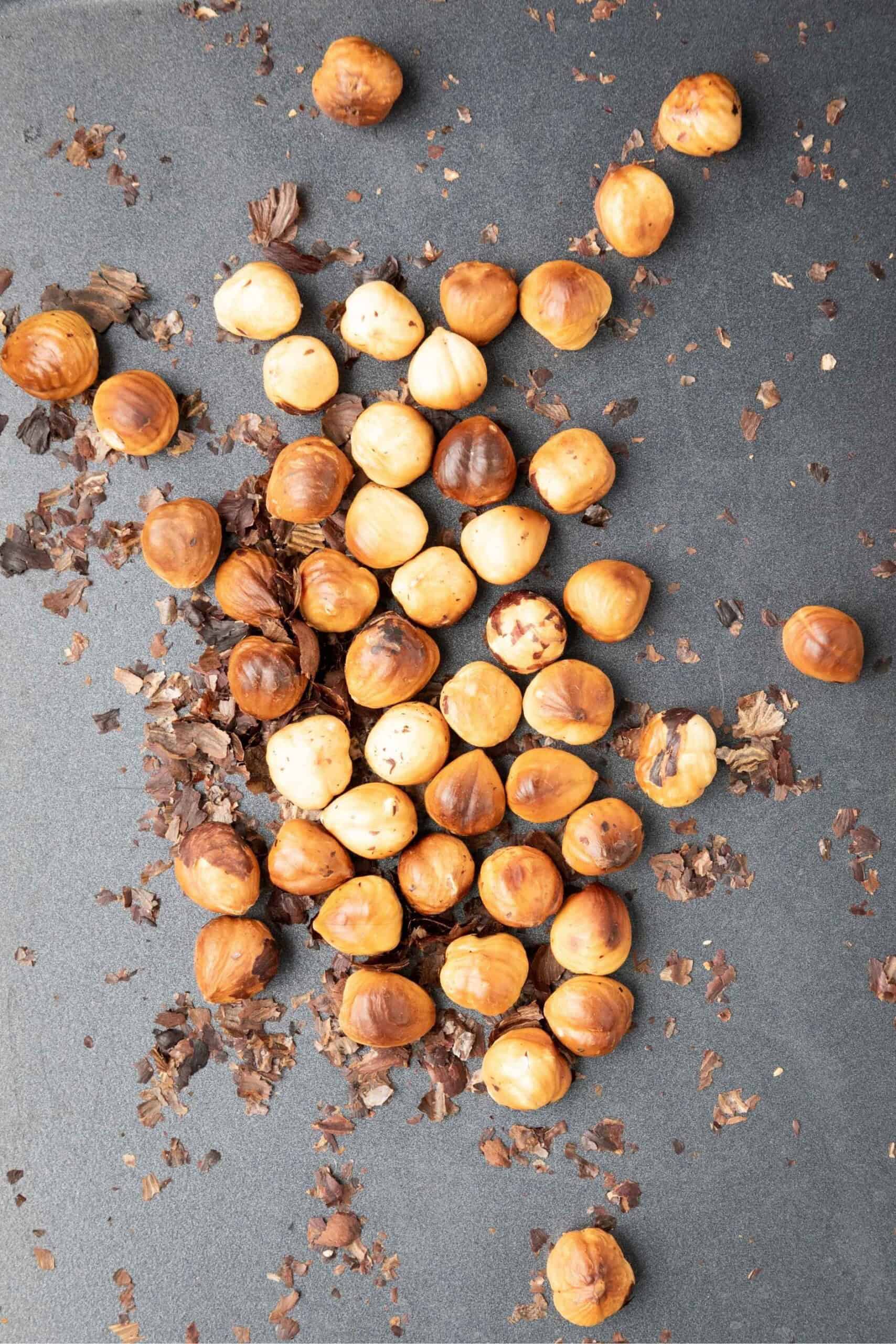 - Roast the Hazelnuts: Spread the hazelnuts on a baking tray and roast them for about 5 minutes. Let them cool off, then rub off the skins with your hands.